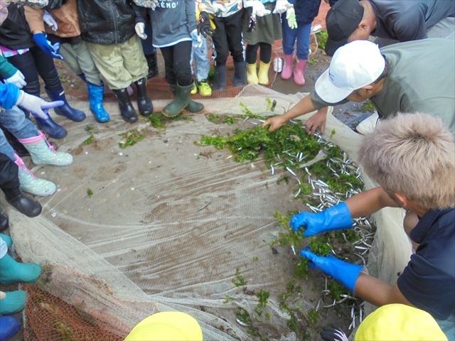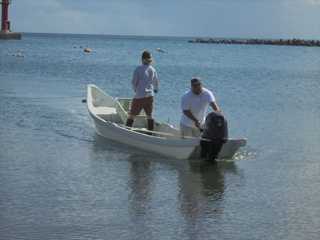 漁師さんが網入れをします。