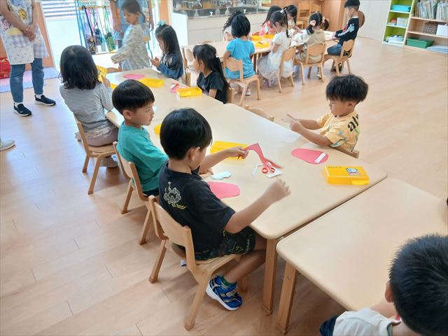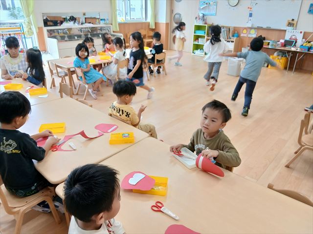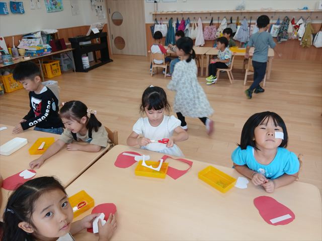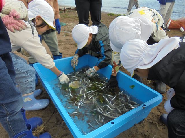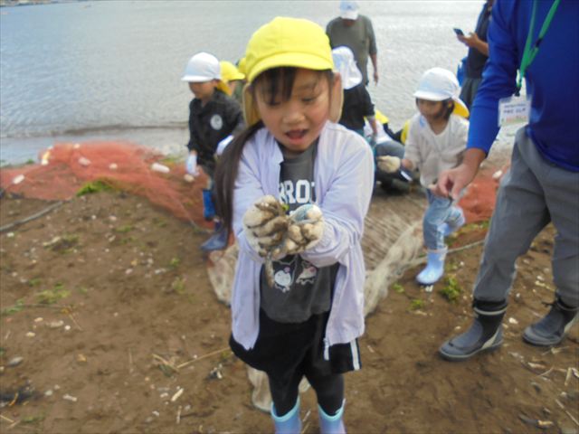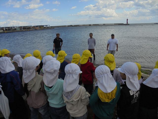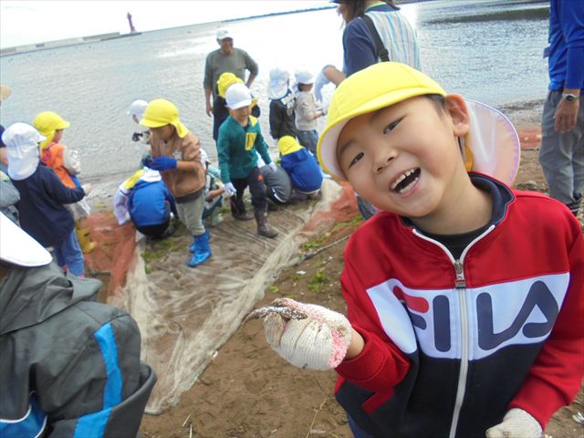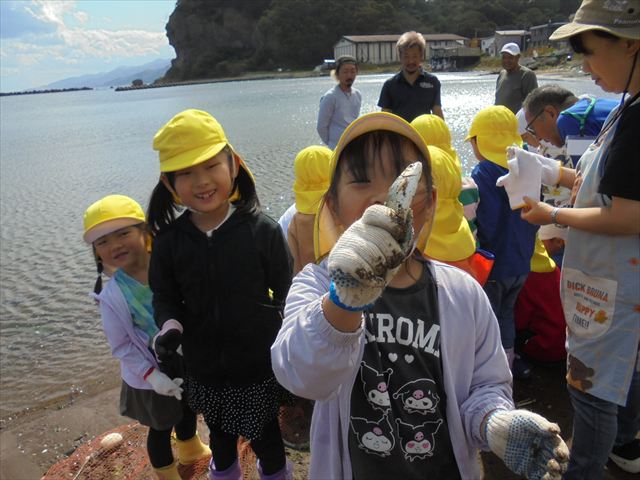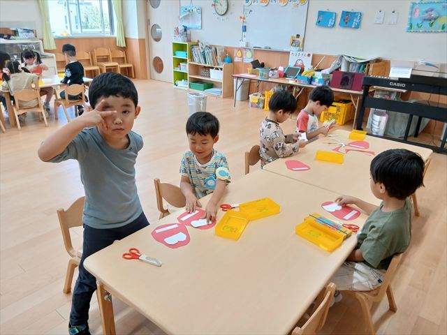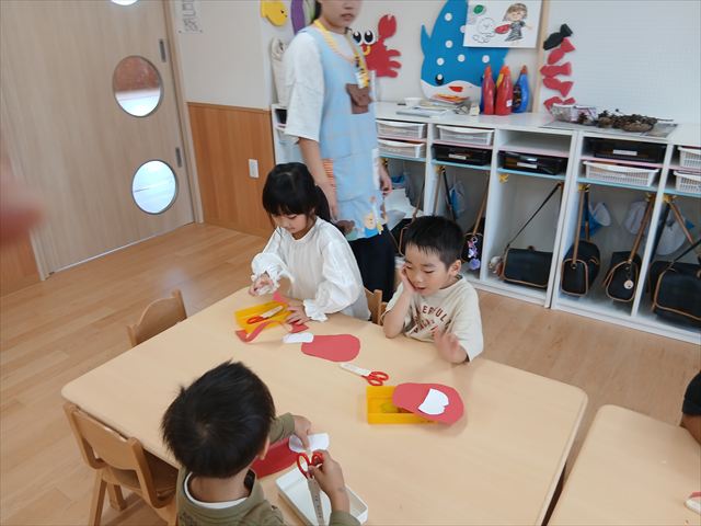 今日は年長さんの地引網体験活動がありました。お魚さわって大喜びでした。かめ組は色遊びを楽しみました。いるか組はだるまのお面づくりをしました。ぺんぎん組はお散歩に行ってから園庭で遊びました。