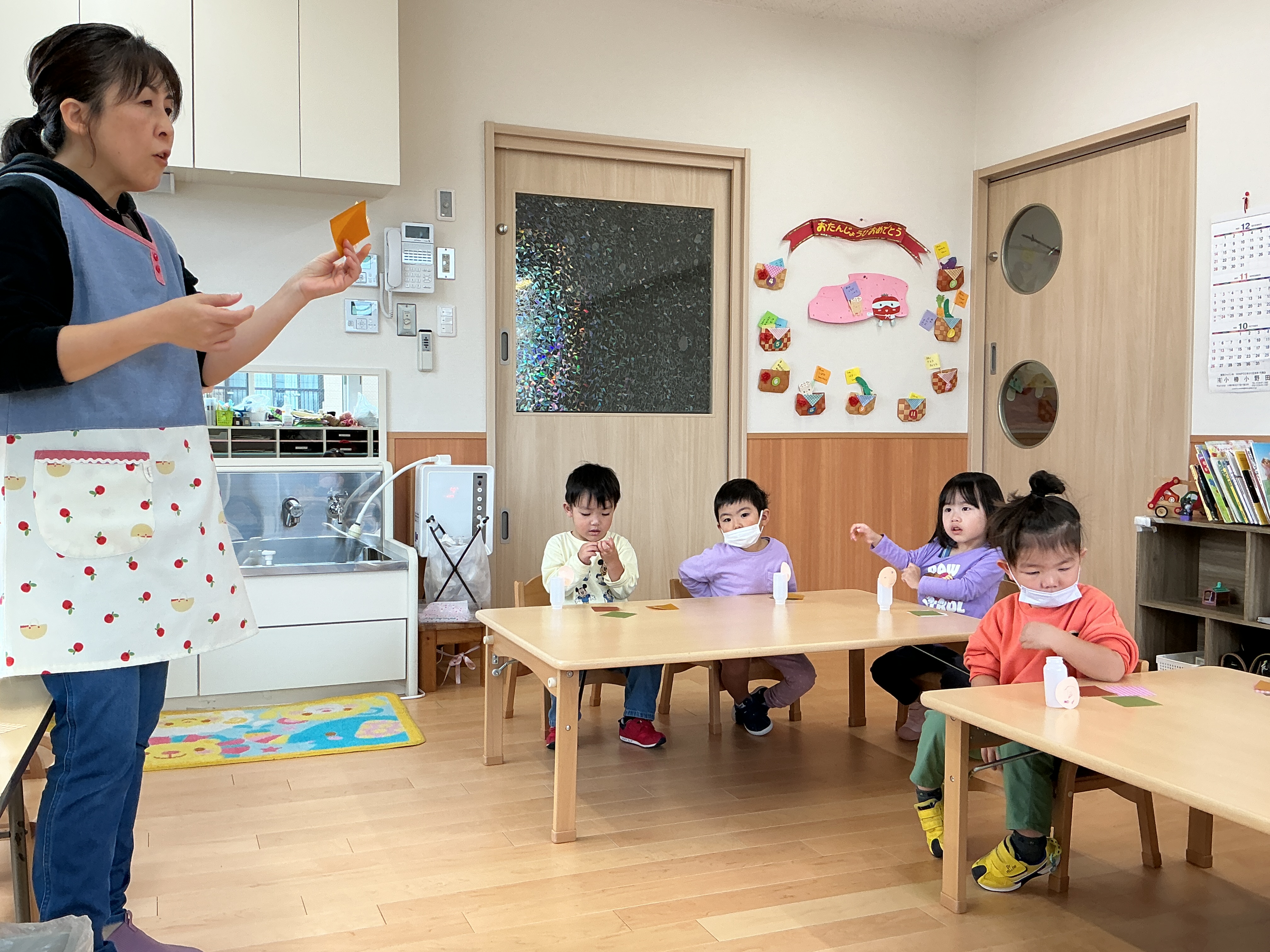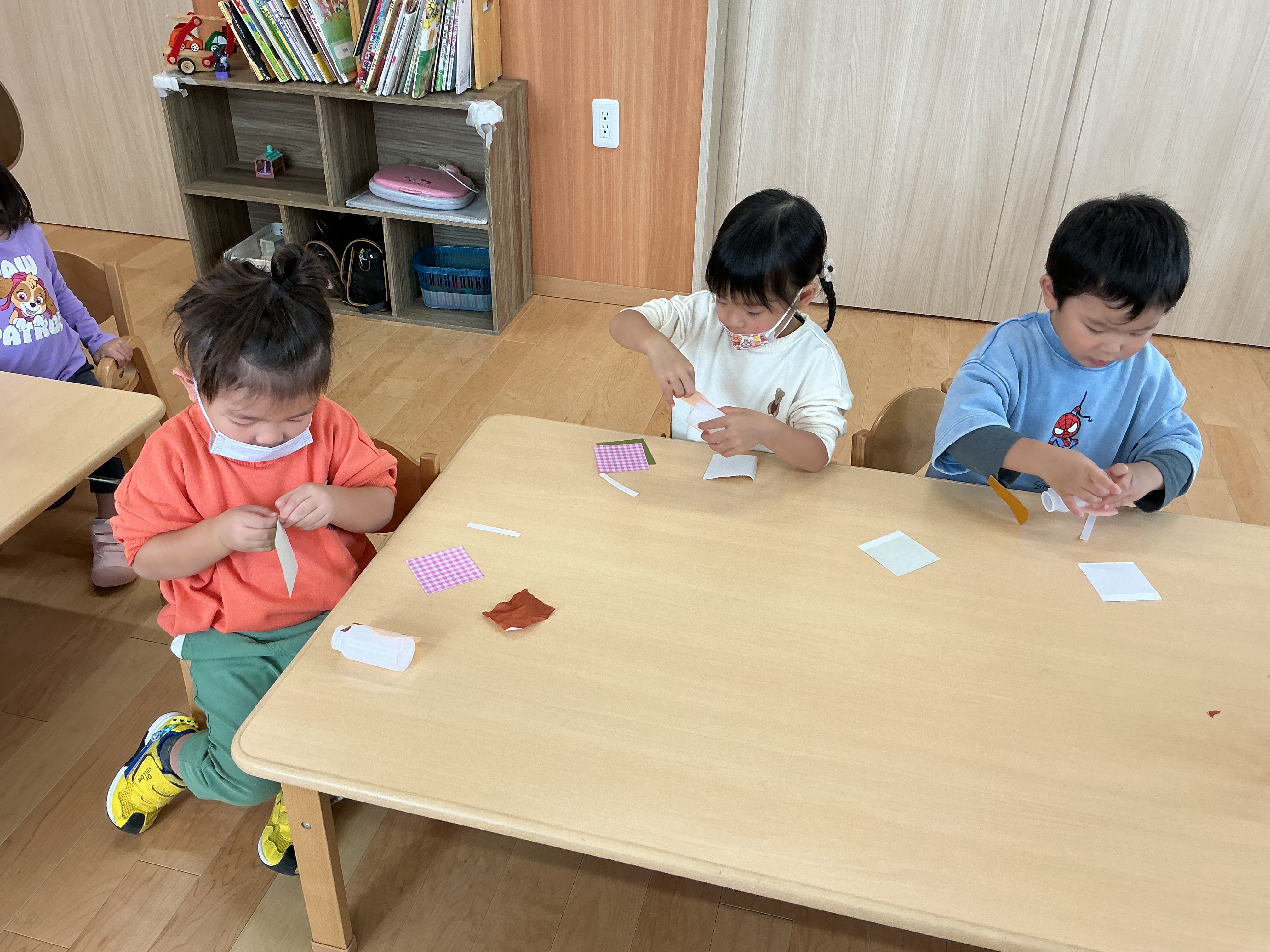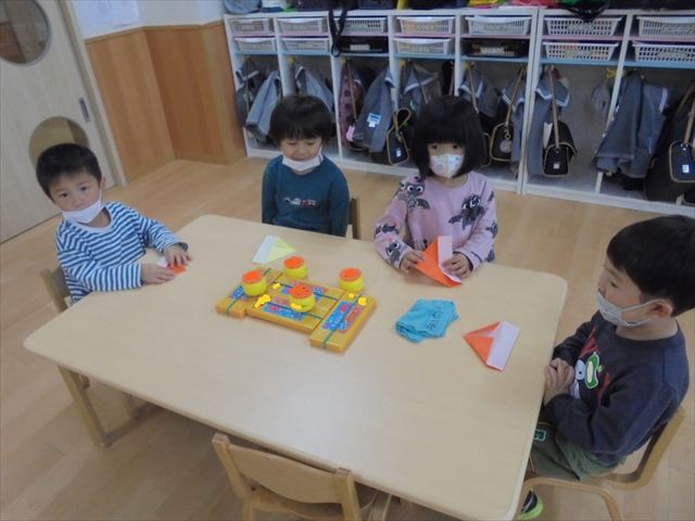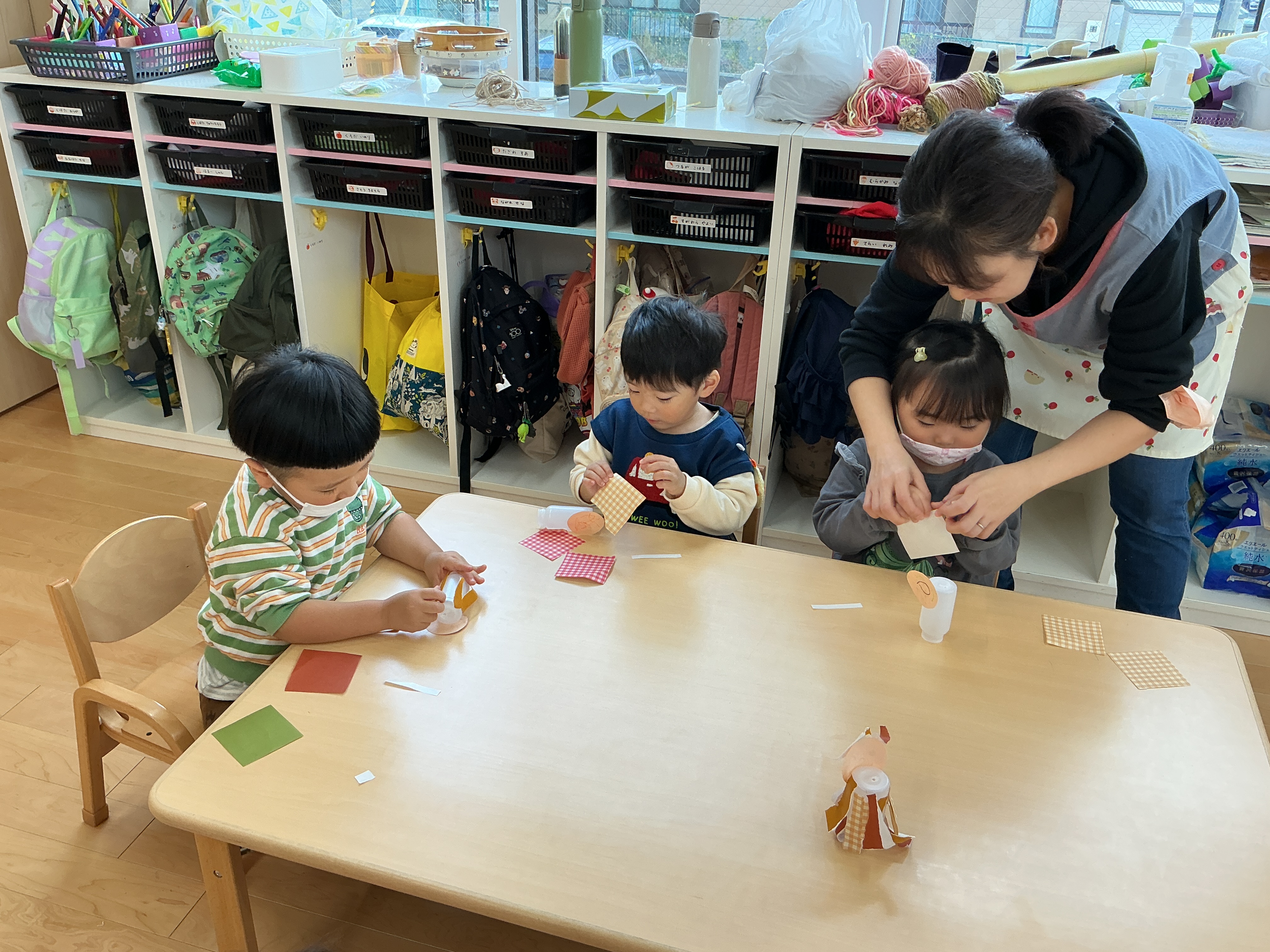 先週はインフルエンザが蔓延していましたが、今週から少し落ち着いてきたようです。今週いっぱいはマスクの着用をお願いします。年少さんは折り紙遊び、年中さんは発表会で使う岩づくり、年長さんはドッジボール遊び、ぺんぎん組さんはミノムシづくりをしていました。