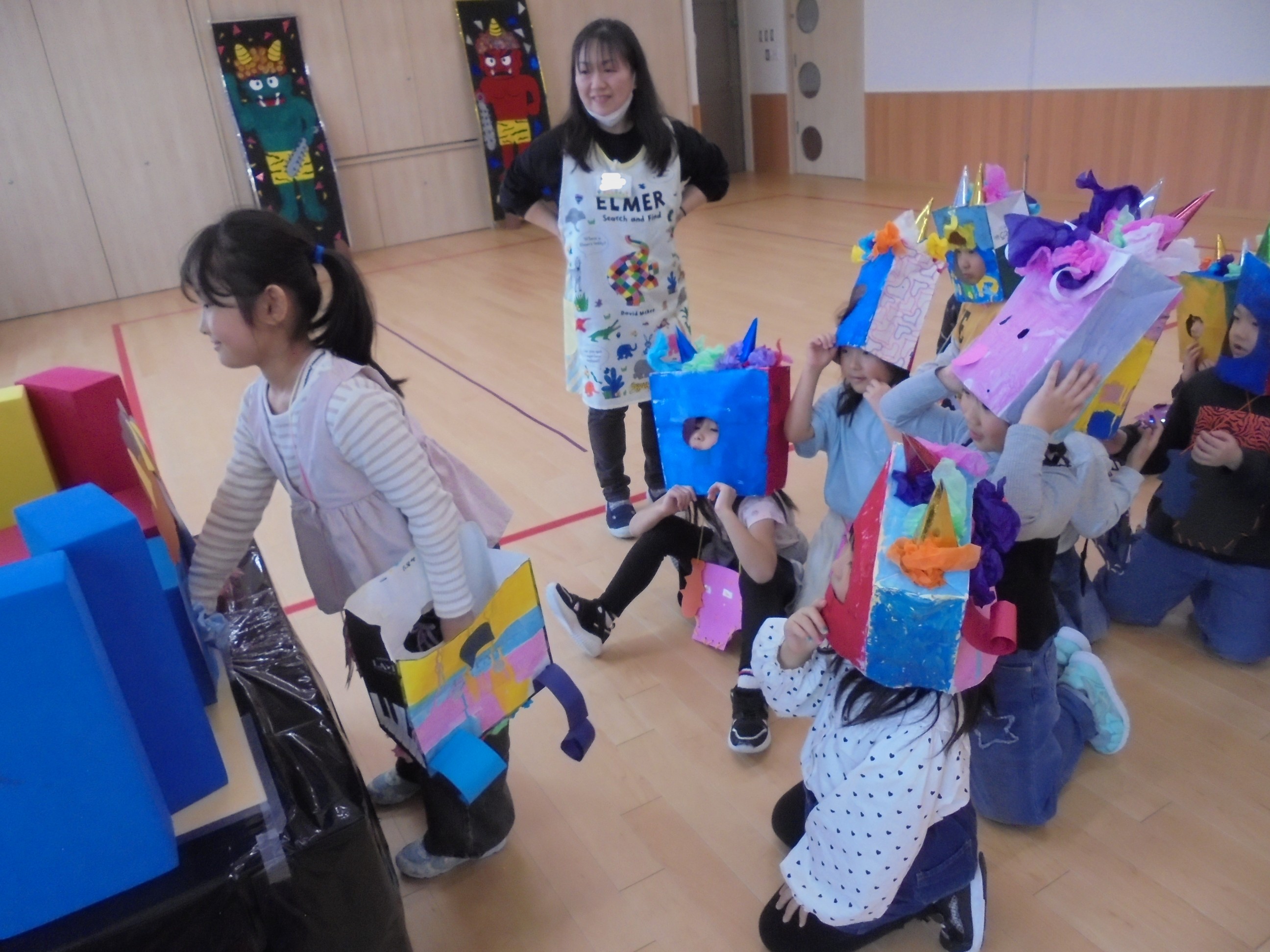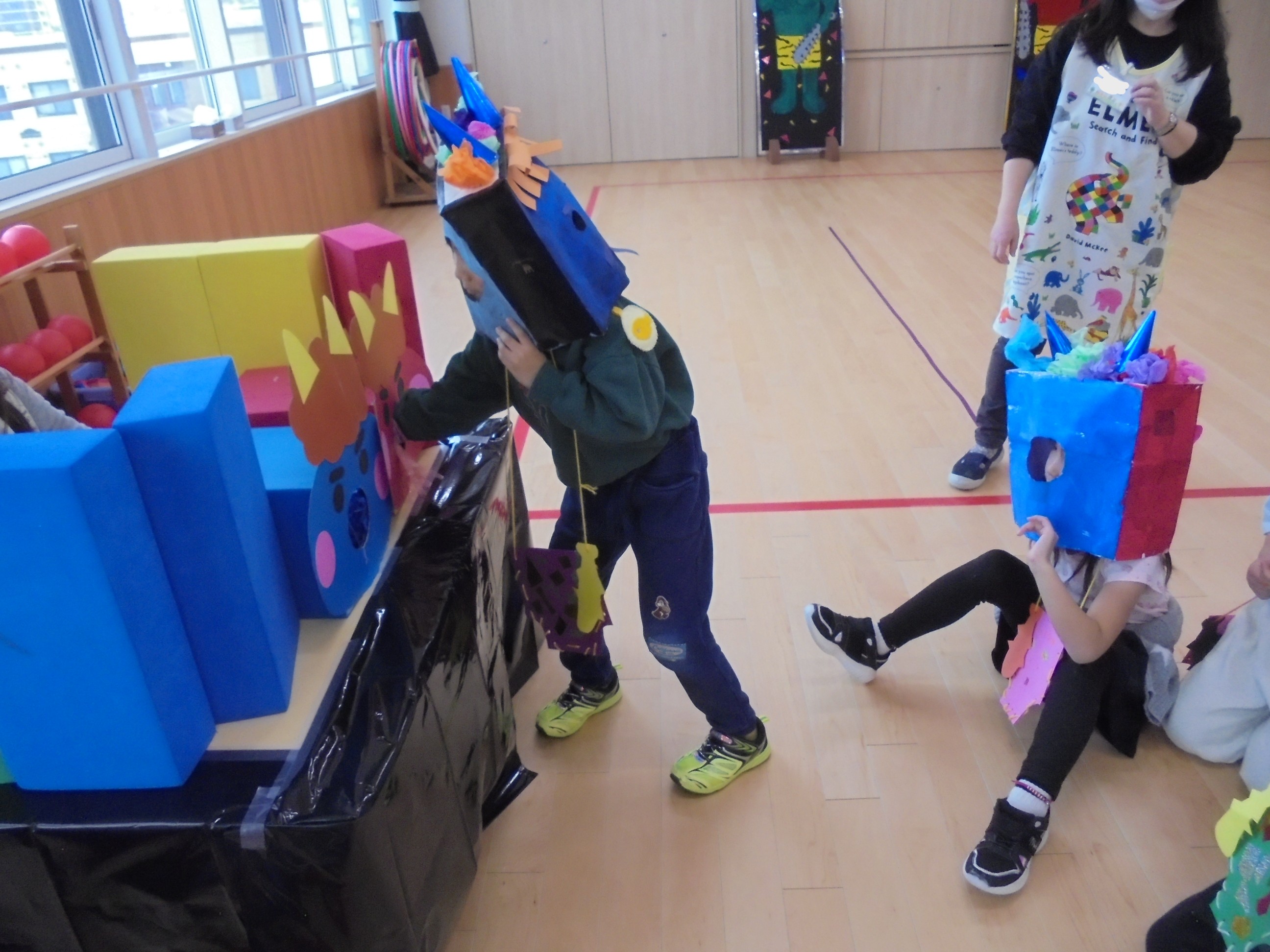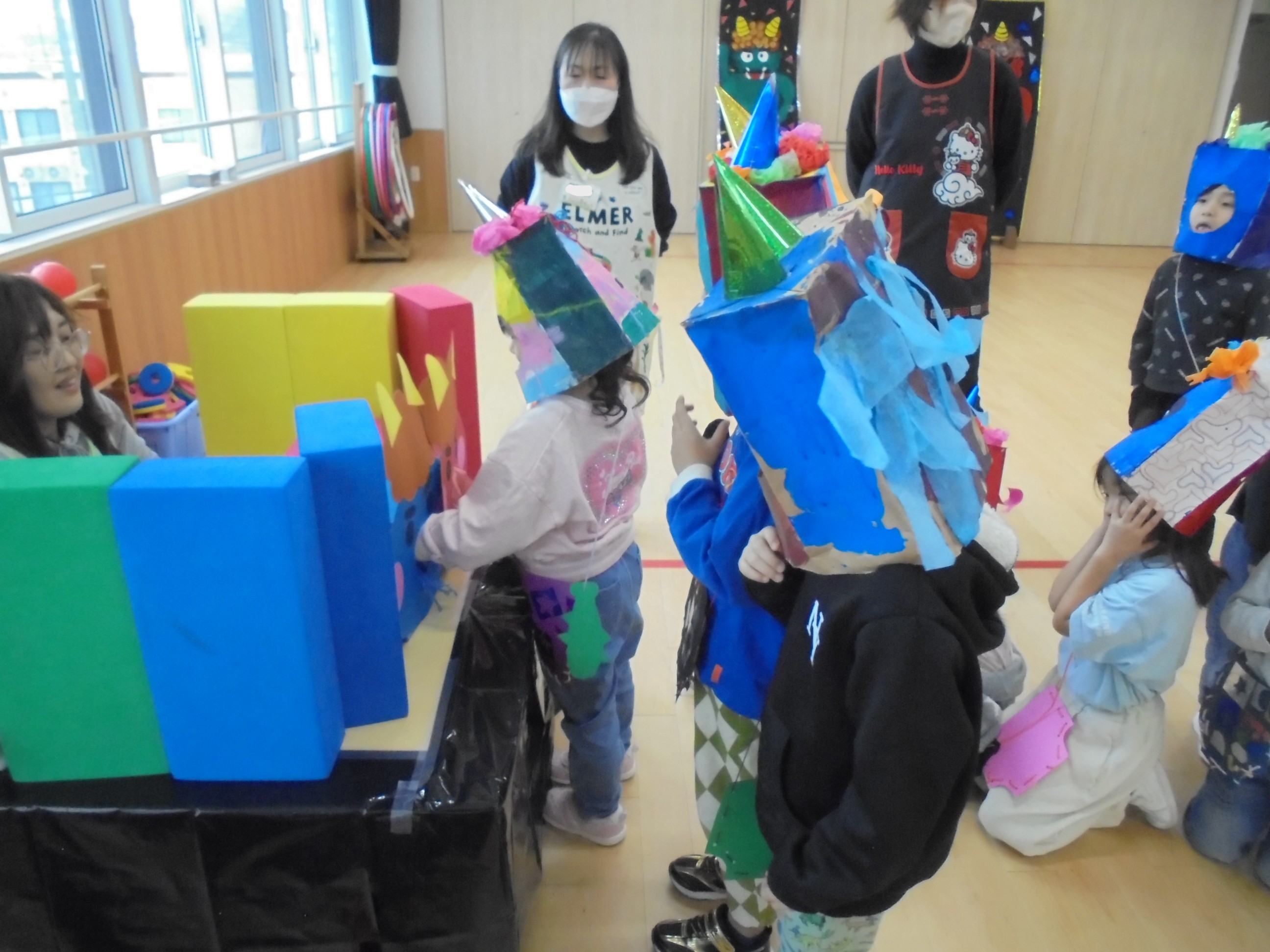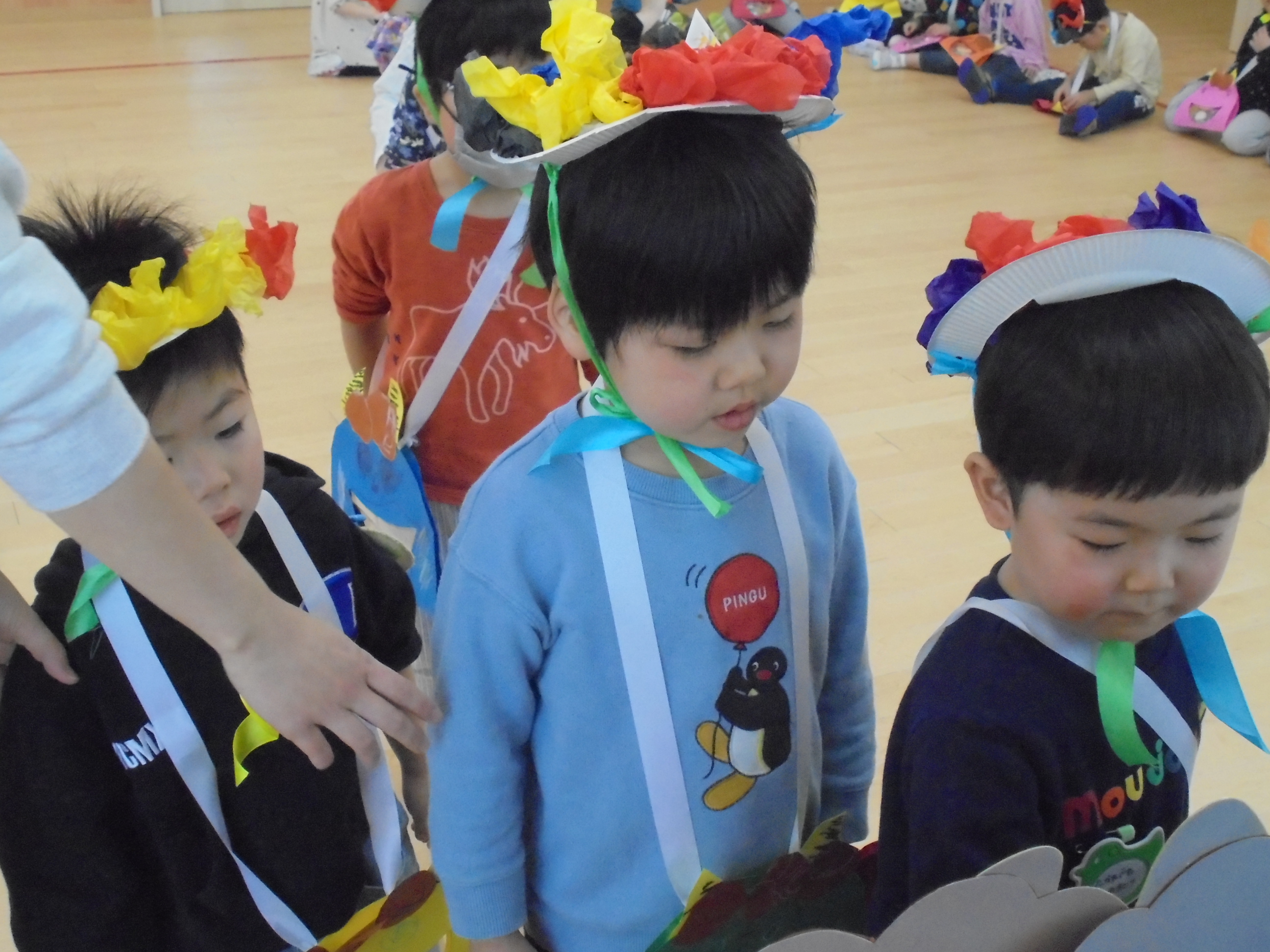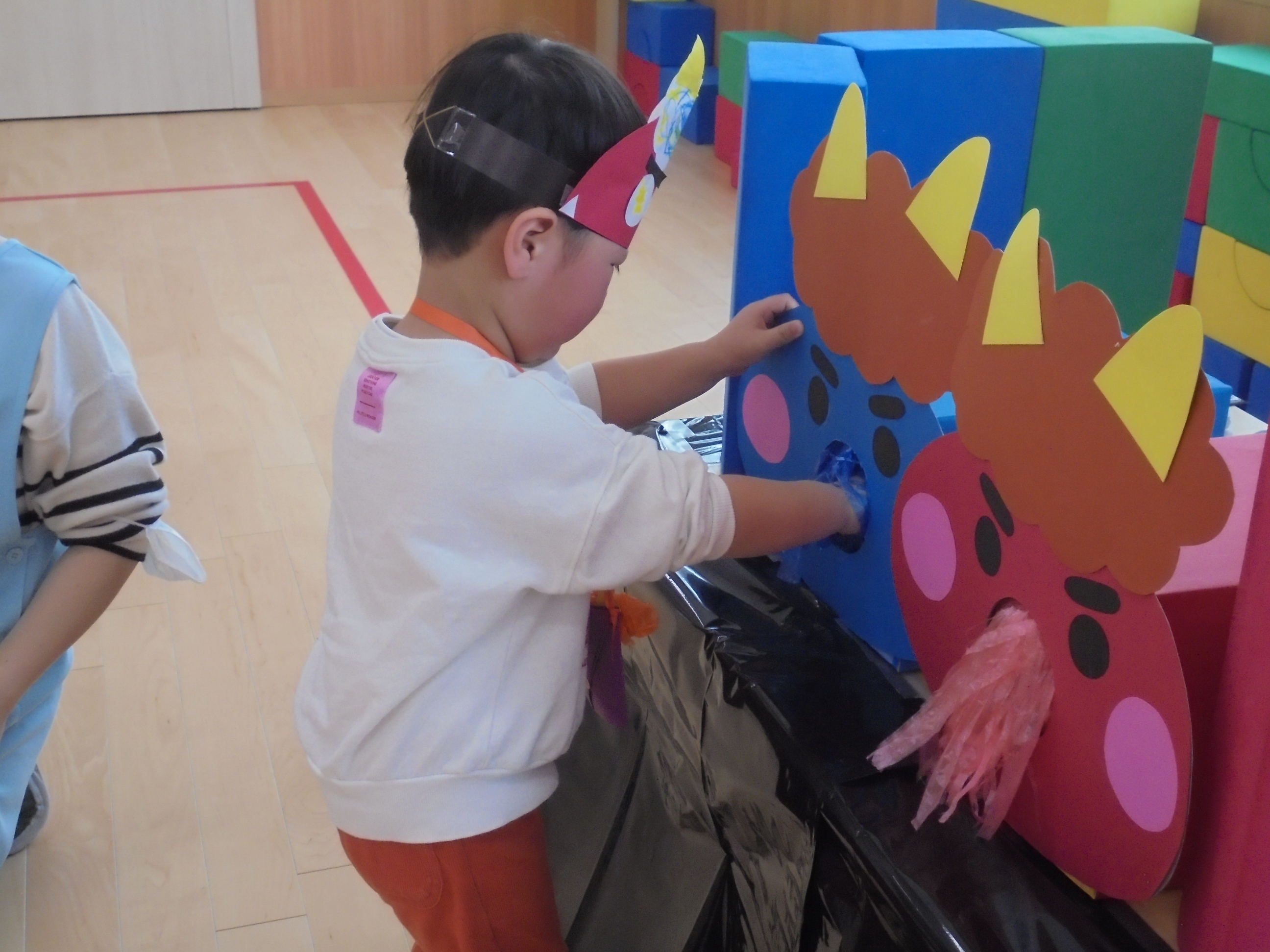 今日は節分会がありました。自分たちにいる鬼を追い出そうと「オニはーそと」「福はーうち」と声を出しながら、豆の代わりにボールを投げました。また、オニの口に手を入れてお菓子をゲットしましたよ!