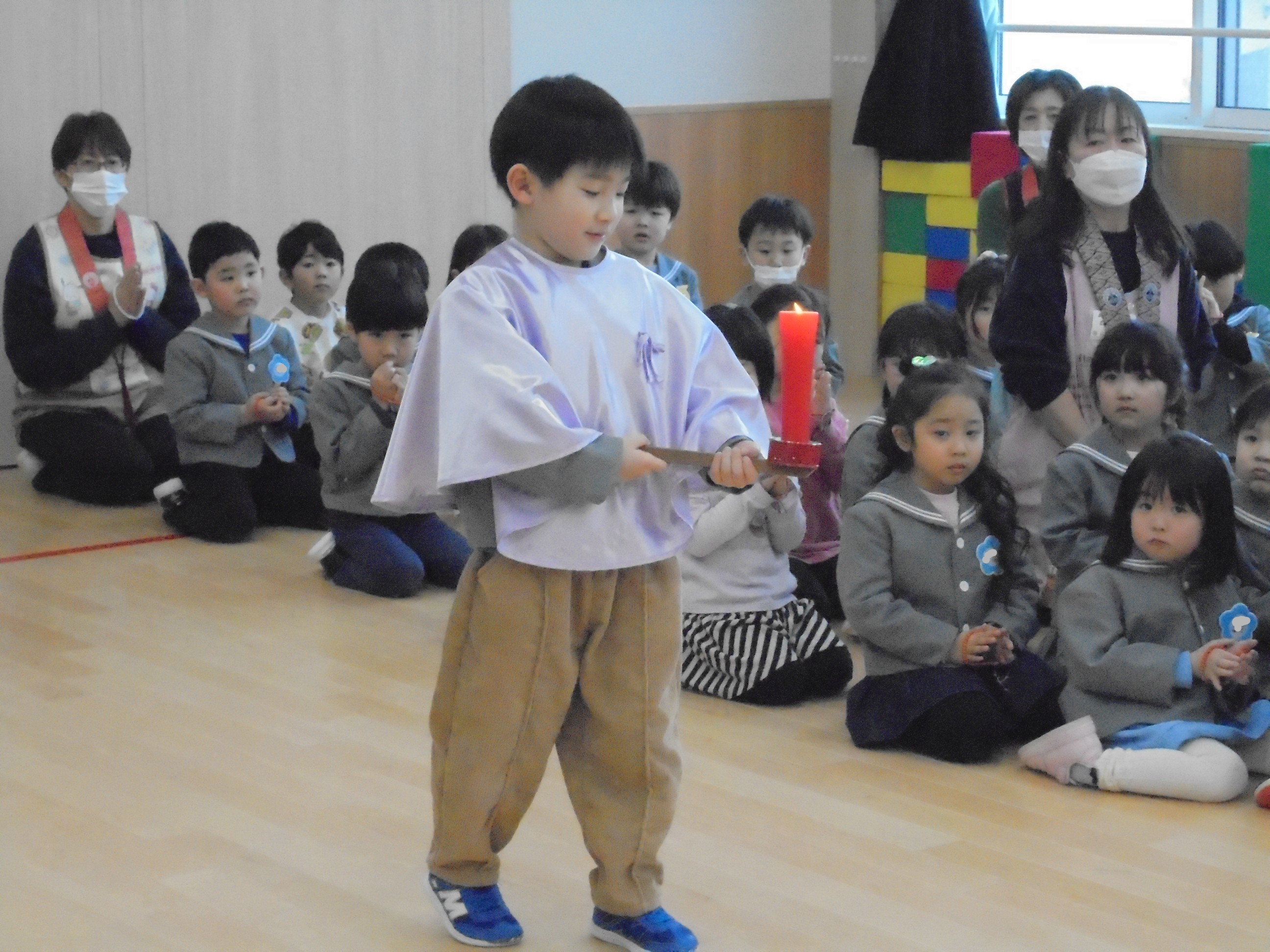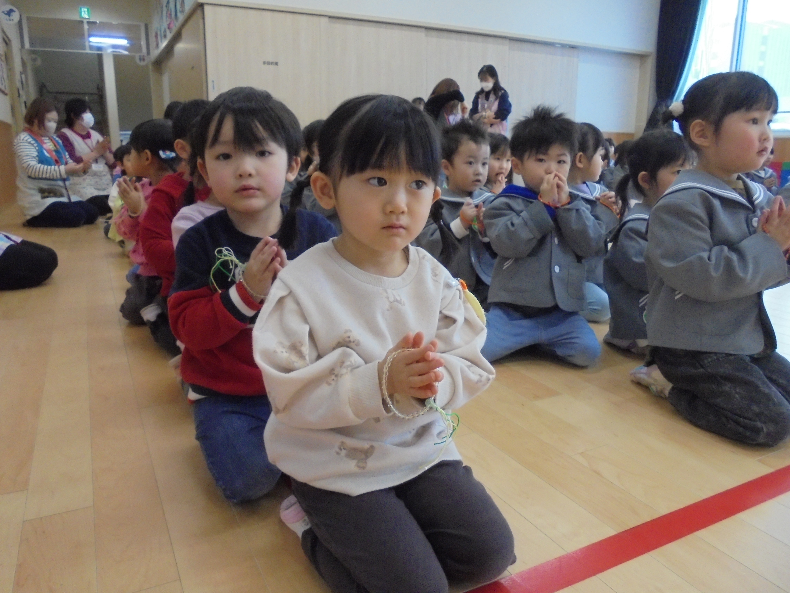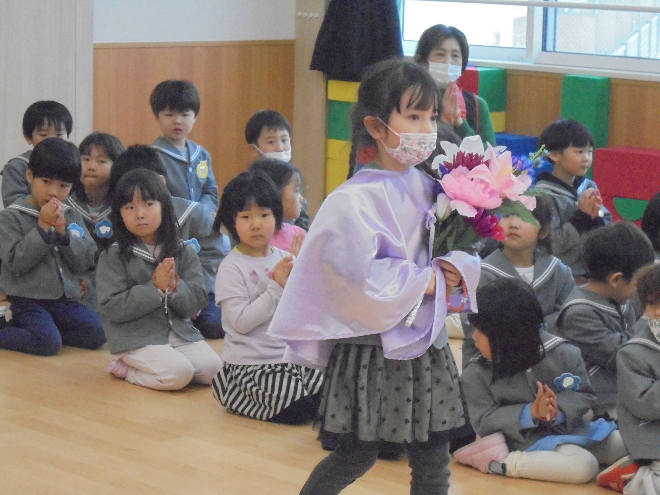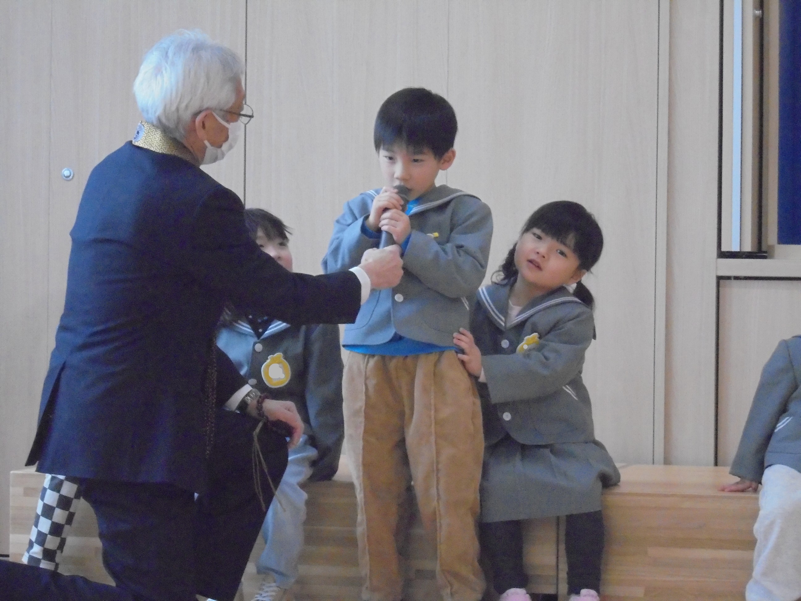 感染症のため延期になっていた1月のお誕生会を行いました。先生たちからの贈り物で「エルサ」が登場し、楽しいひと時を過ごしました! いるか組ではアイスキャンドル作りに挑戦していましたよ。