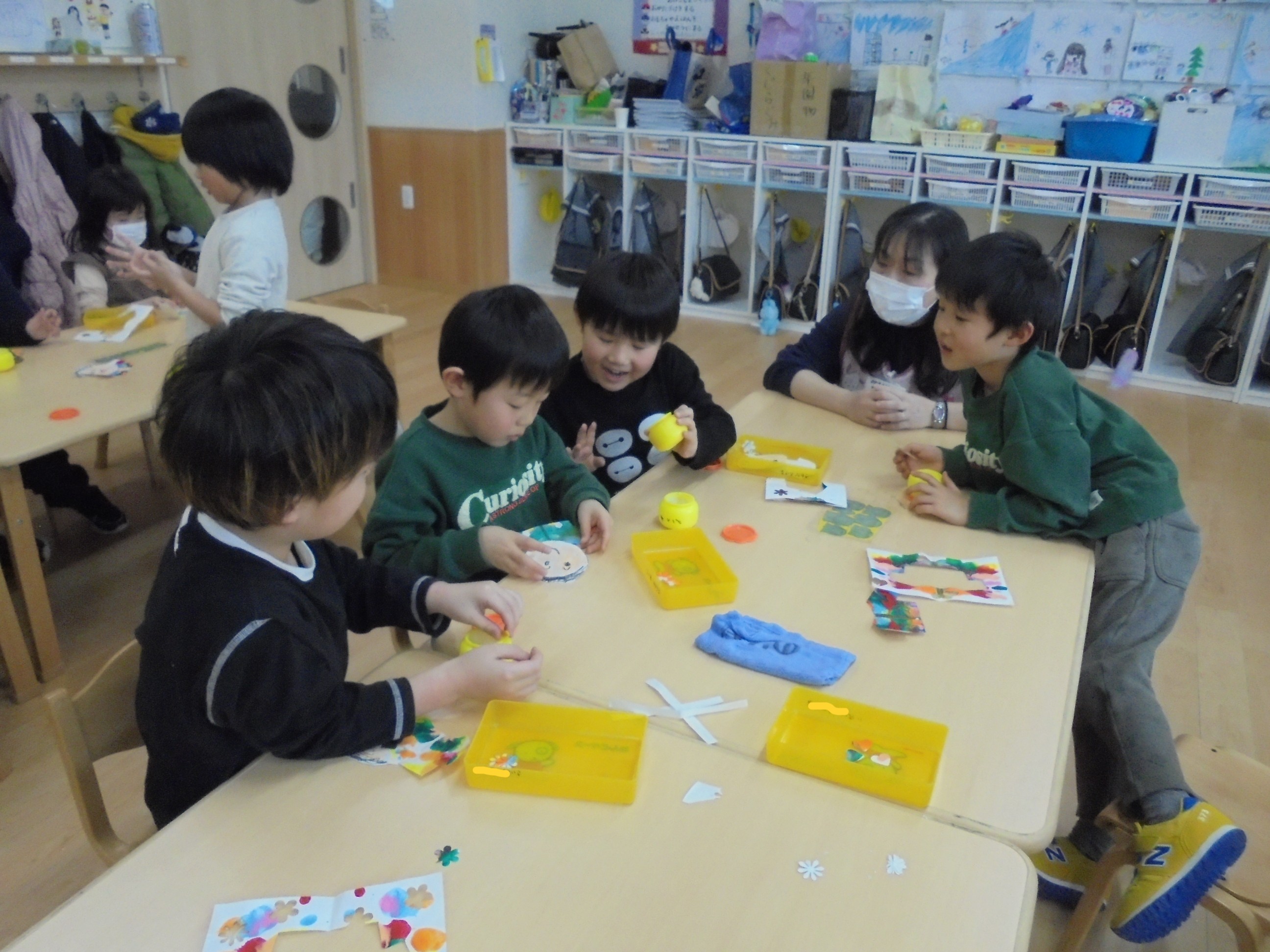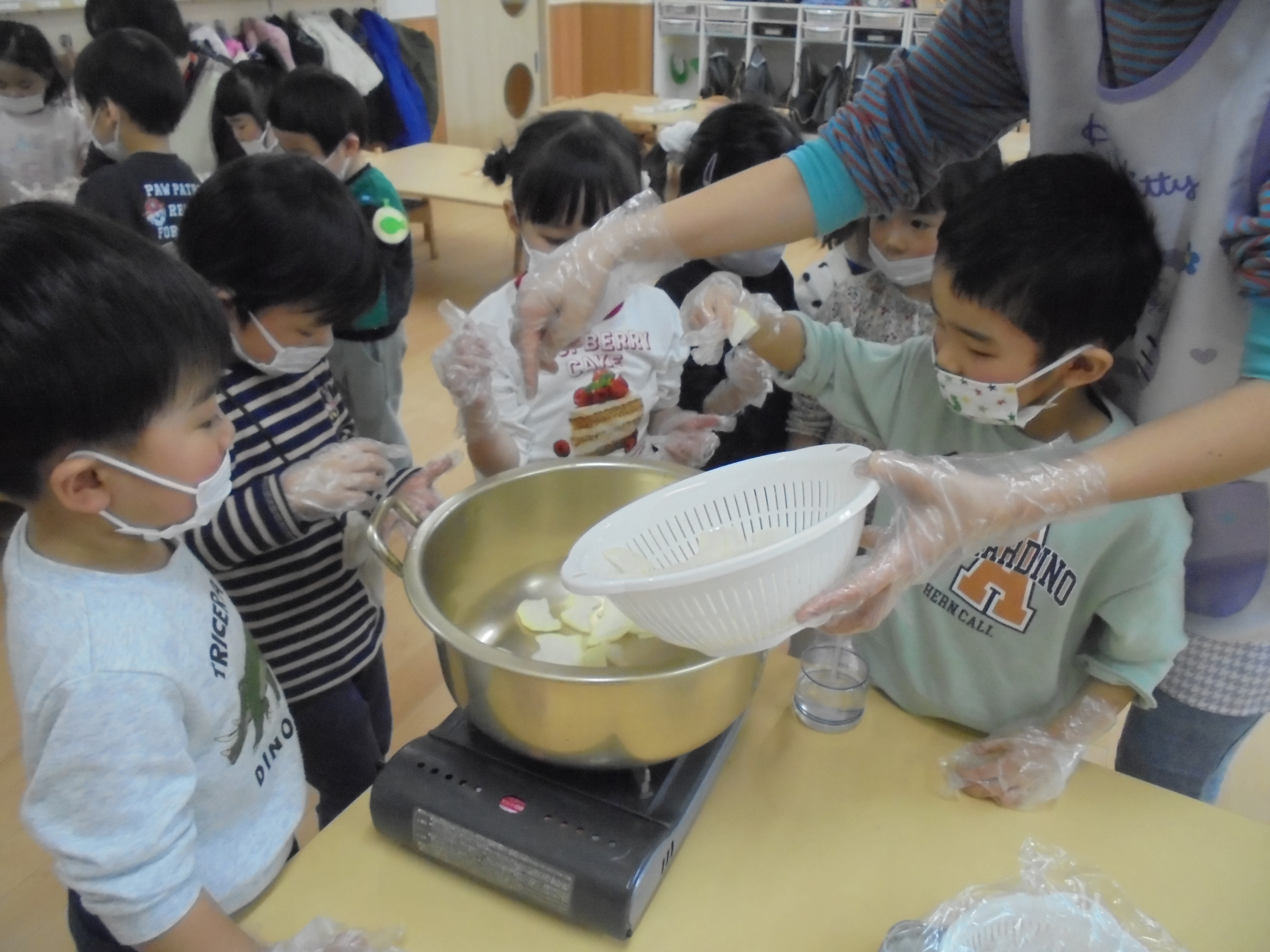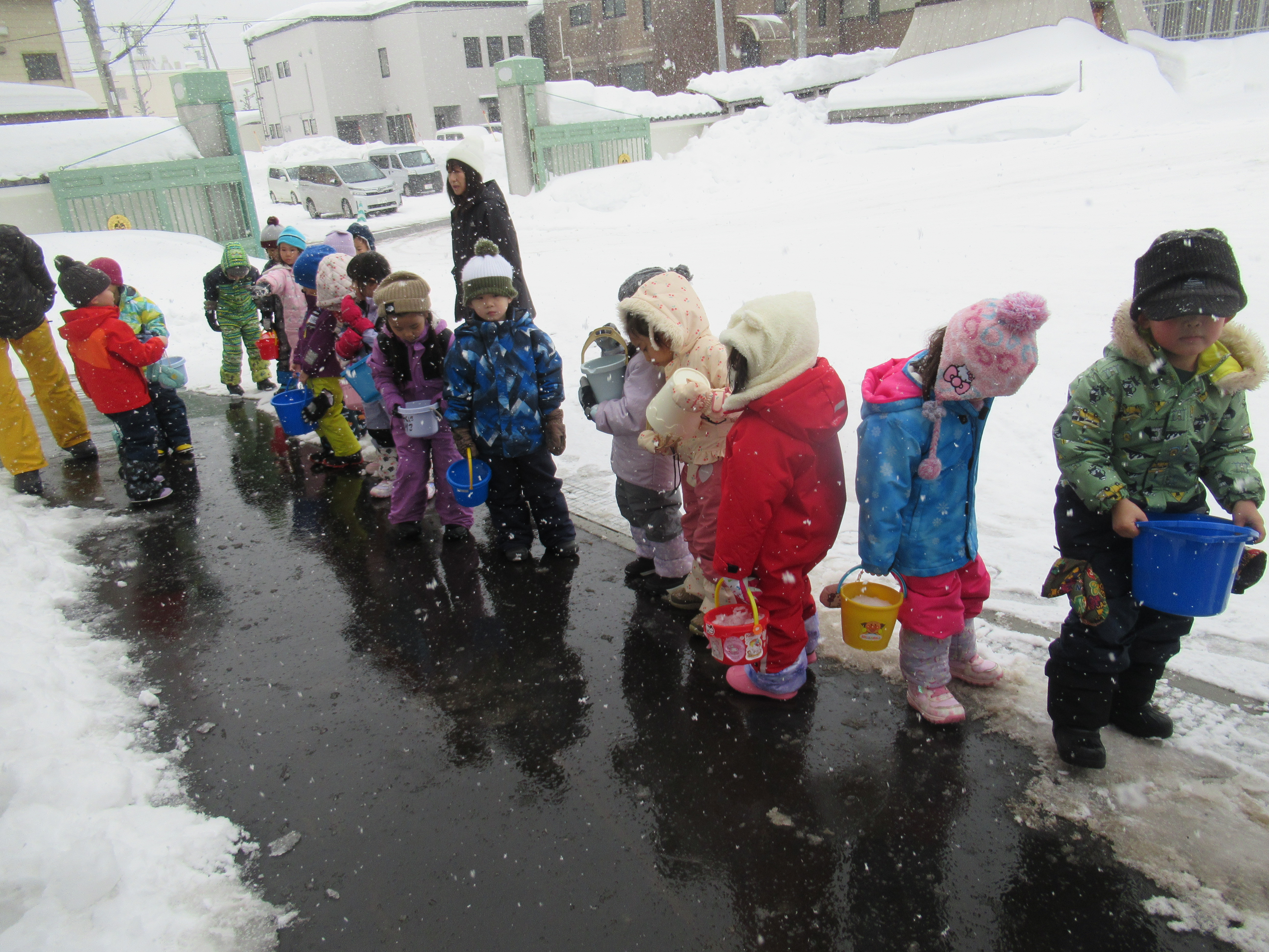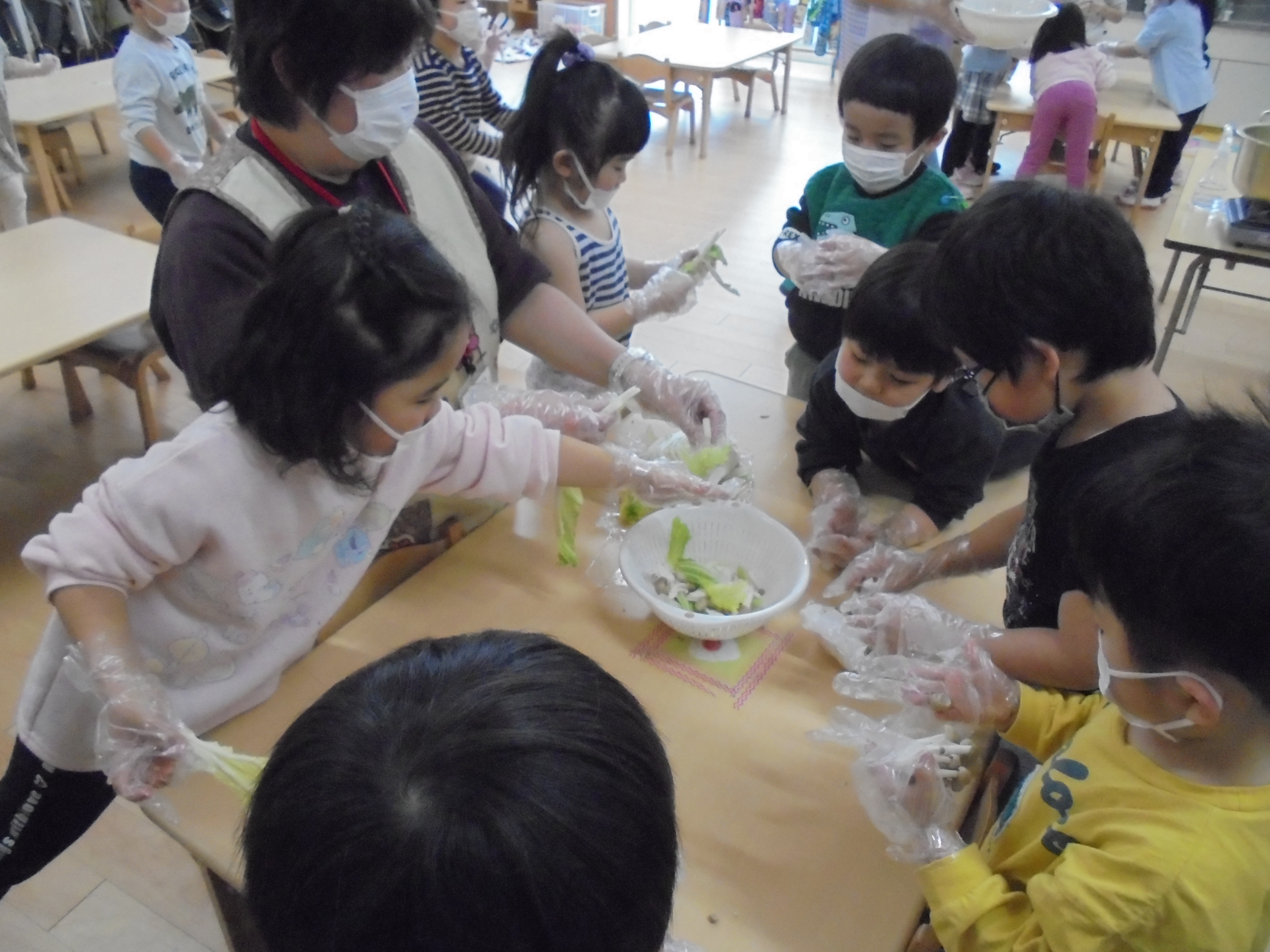 今日は、あざらし組で豚汁を作って食べました。11月に自分たちで作ったお味噌を使って作りました。とっても美味しかったですよ。お味噌は少しずつ持ち帰りました。年中さん年長さんの制作の様子や、いるか組の雪遊びの様子もご覧ください。