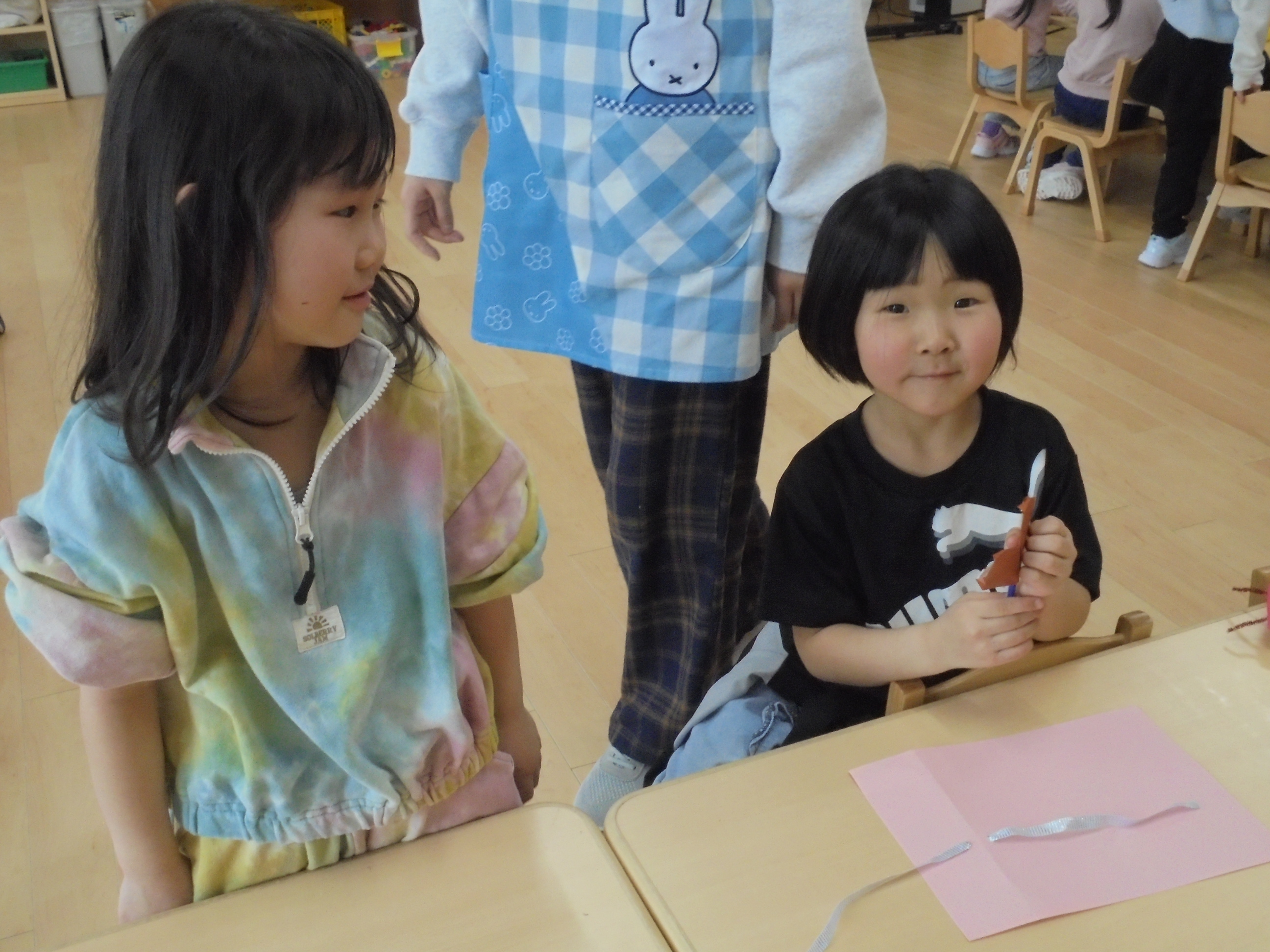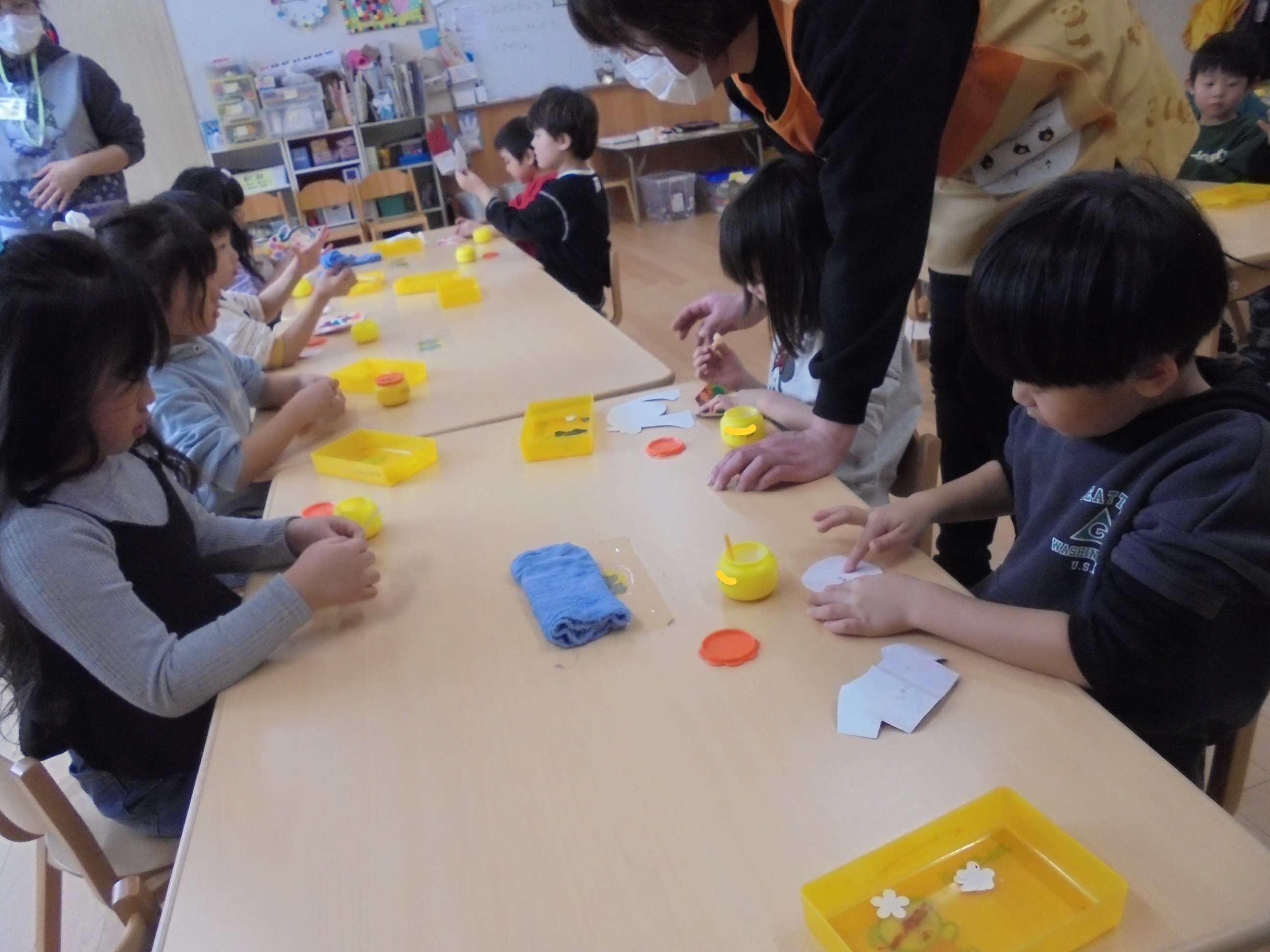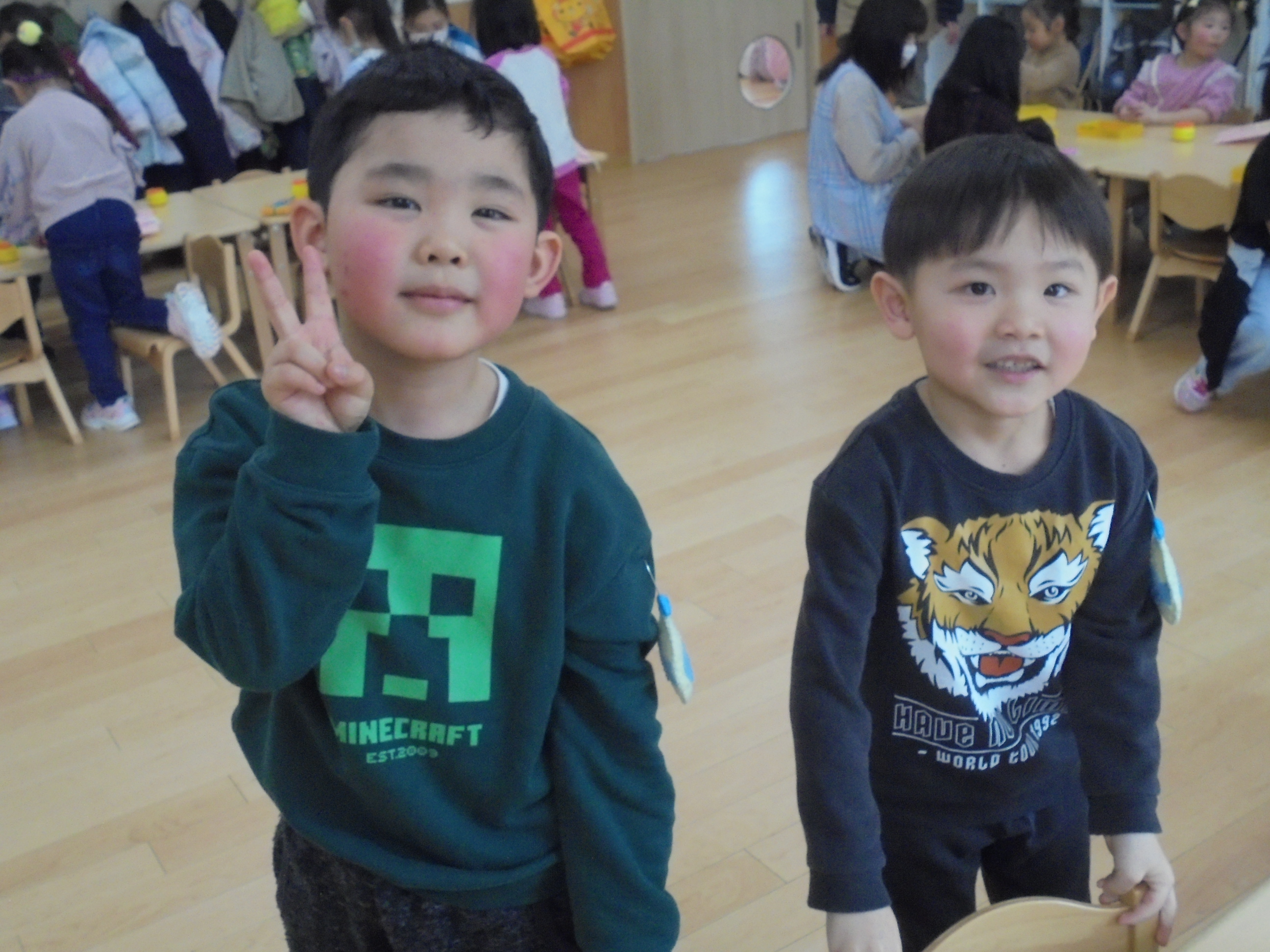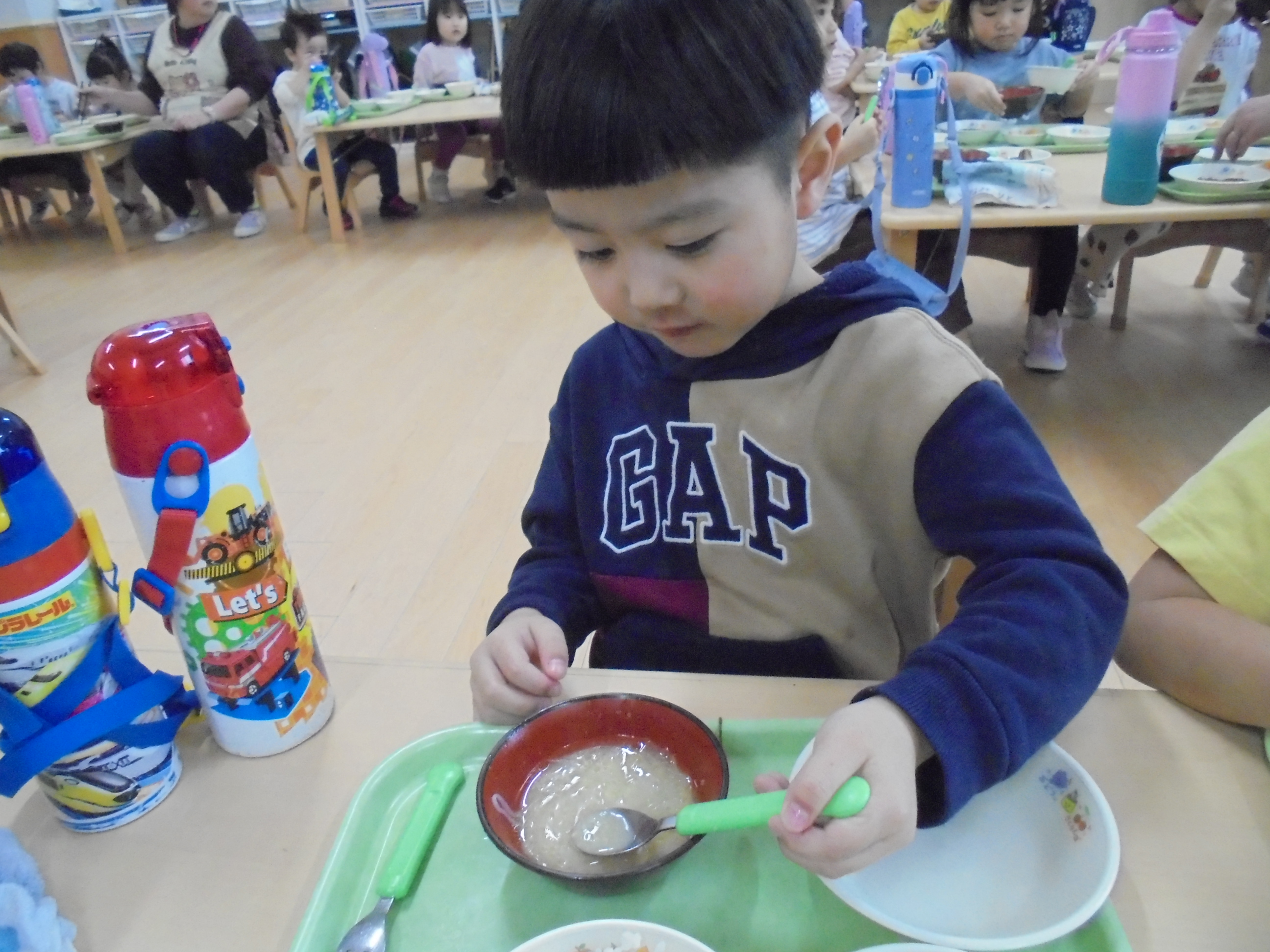 今日は、あざらし組で豚汁を作って食べました。11月に自分たちで作ったお味噌を使って作りました。とっても美味しかったですよ。お味噌は少しずつ持ち帰りました。年中さん年長さんの制作の様子や、いるか組の雪遊びの様子もご覧ください。