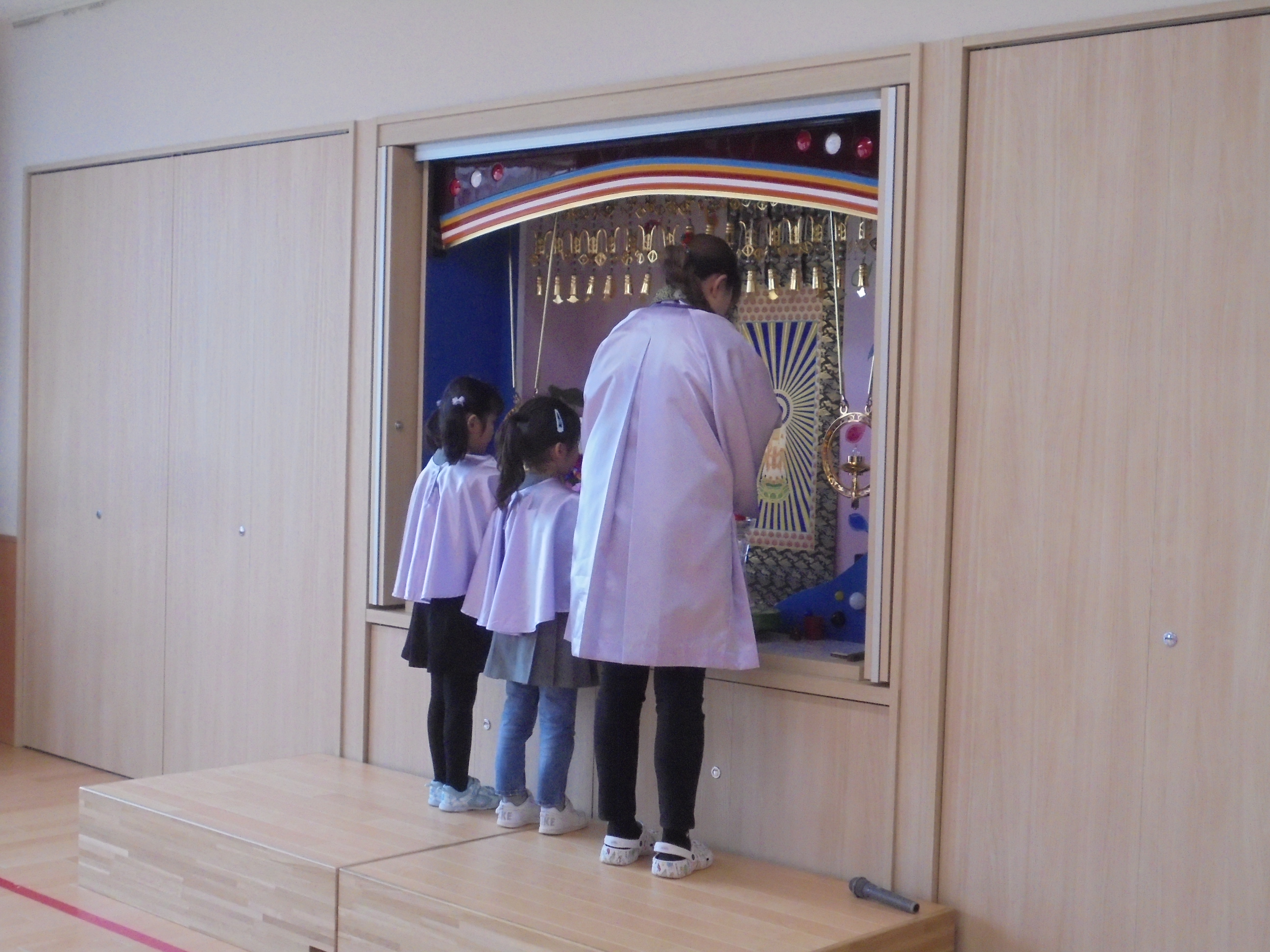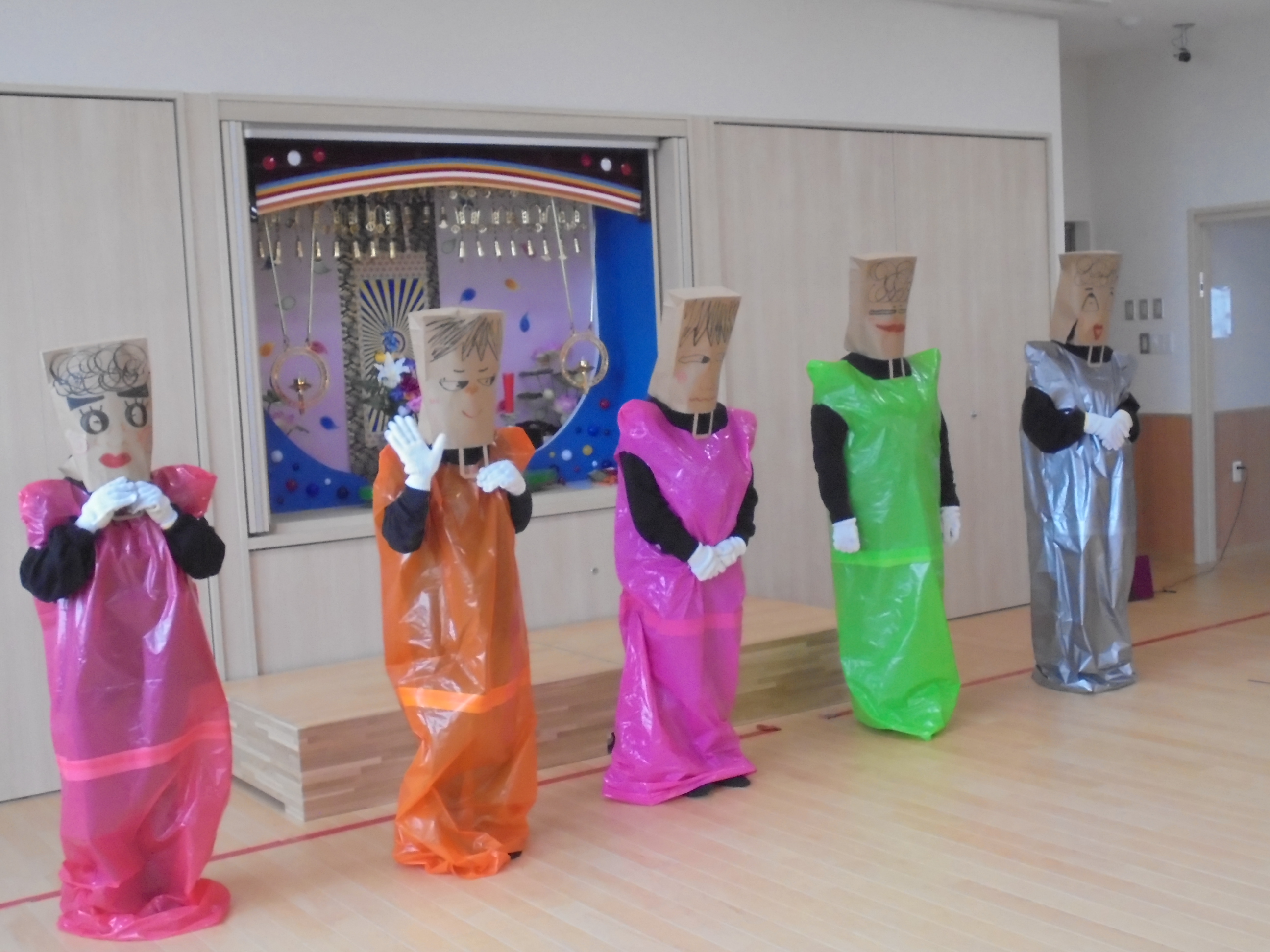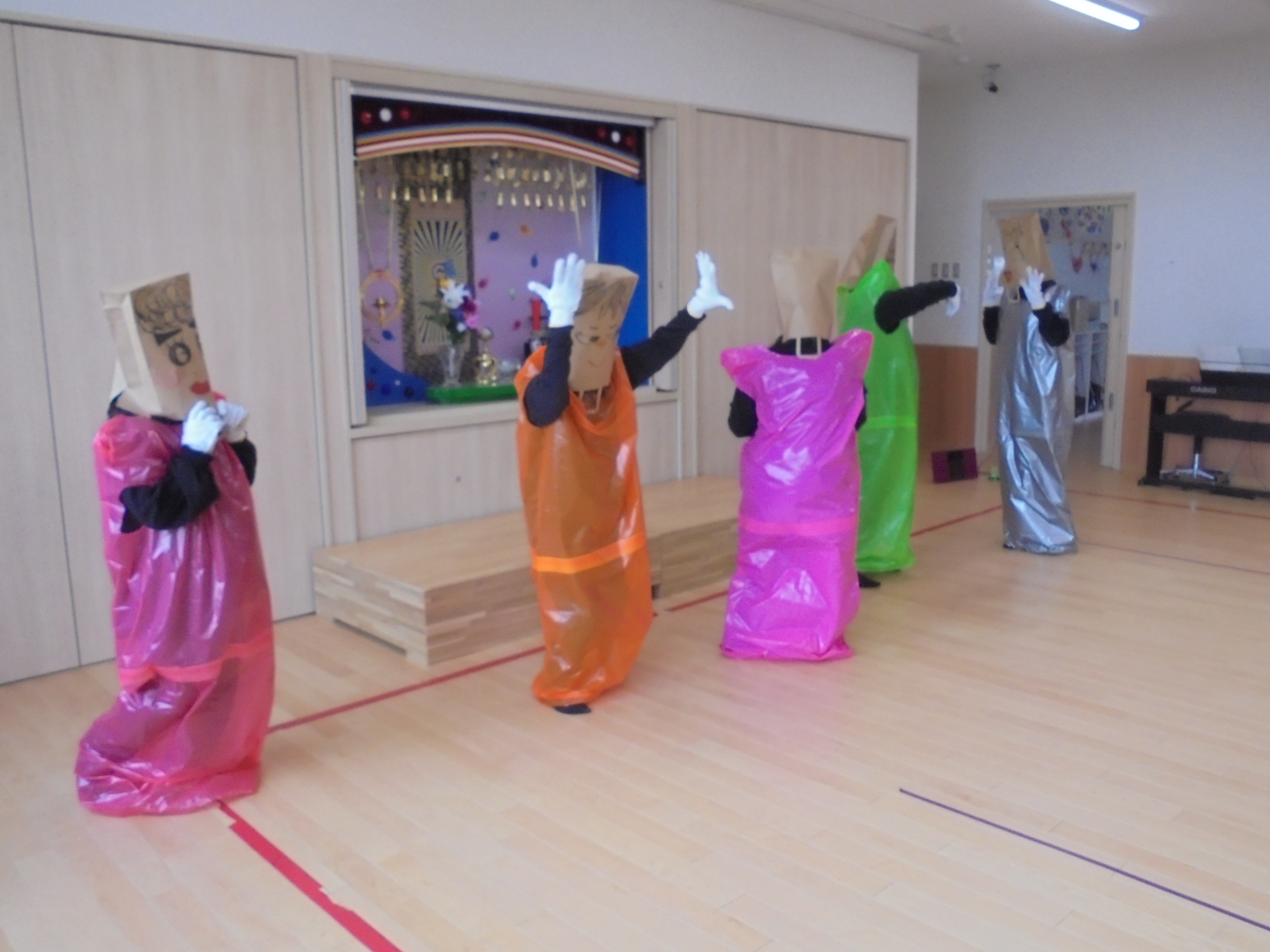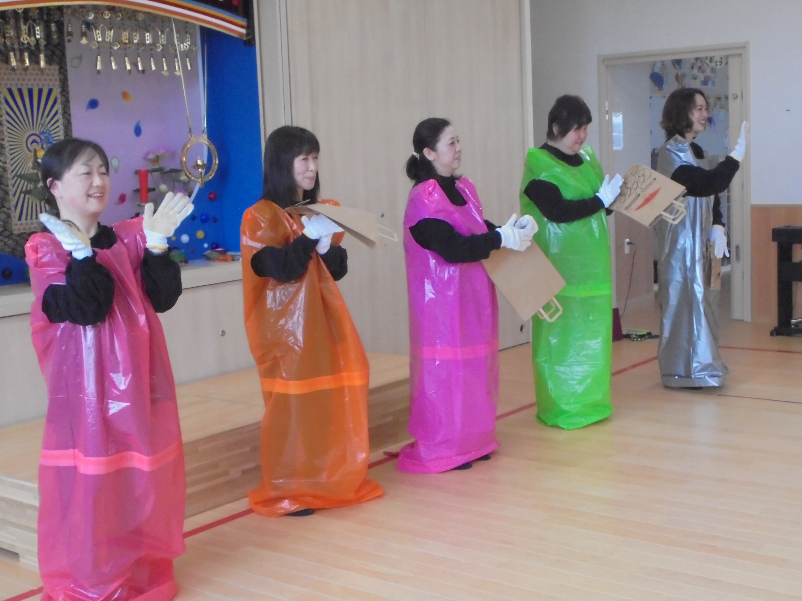 今日は3月のお誕生会でした。インタビューではどんな遊びが好きかはっきり言えてましたよ。先生たちからの贈り物は、先生当てクイズでした。(^^)/
