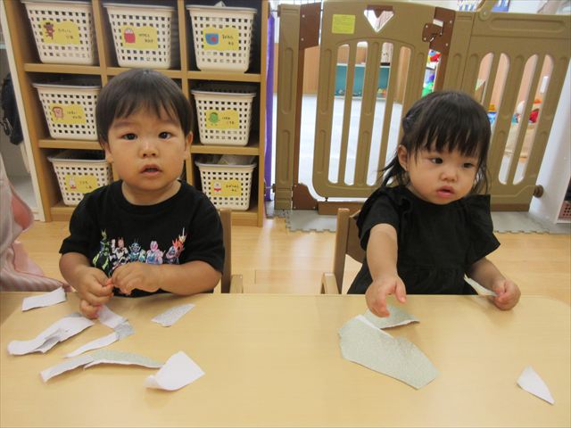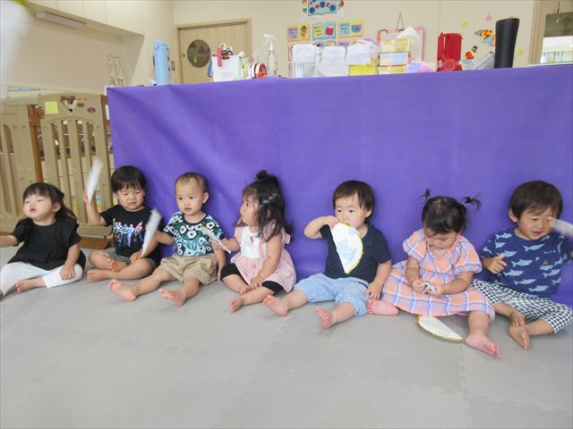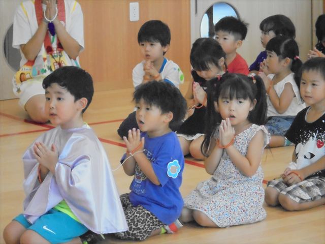 今日から2学期が始まりました。久しぶりに会った友達もいて楽しそうでした。始業式では、園長先生から二学期は、「挨拶をしっかりしましょう。お部屋で走り回らないこと。お片づけはしっかりやりましょう。」とお話がありました。