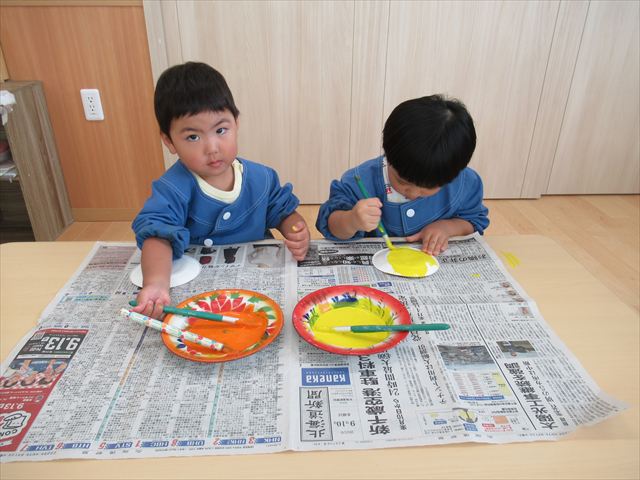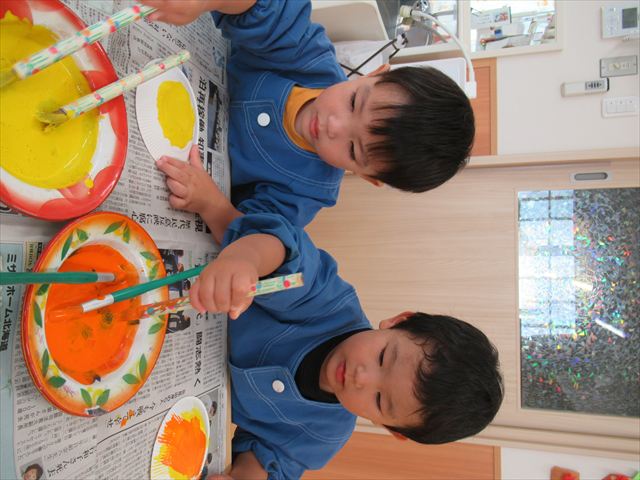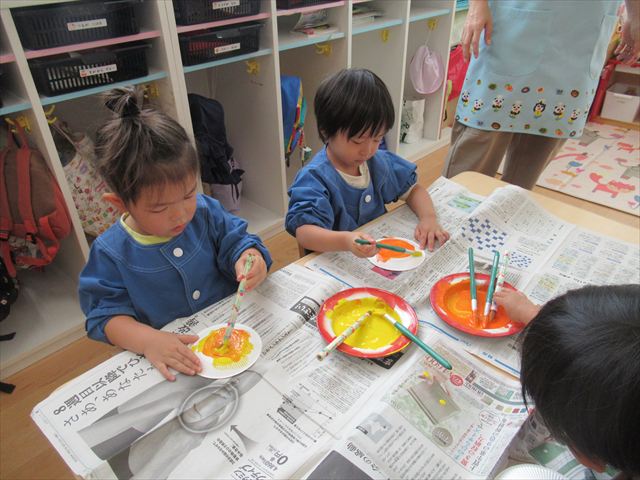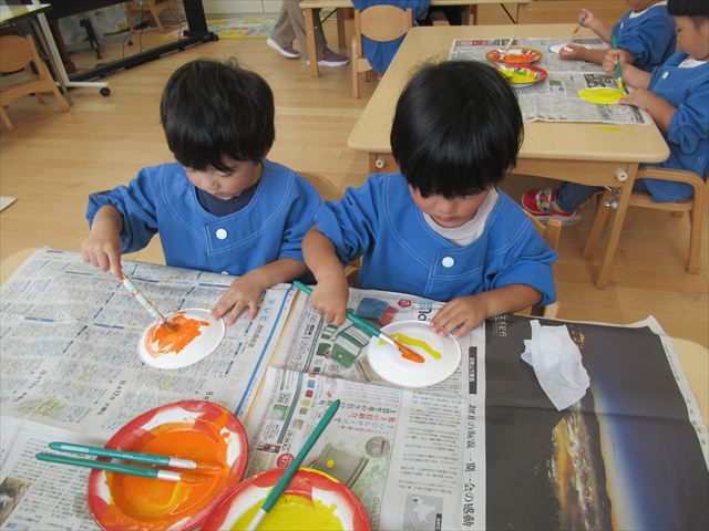 ぺんぎん組さんは絵の具で色遊び